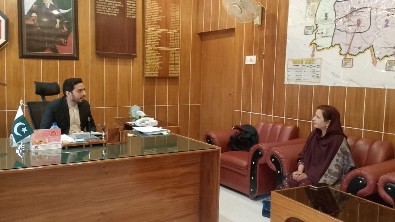 A meeting was held at the Deputy Commissioner’s Office, Killa Saifullah, between the Principal of Taaleem Foundation Grammar School (TFGS), Muslim Bagh, Ms. Hina Naqvi, and the Deputy Commissioner, Mr. Saghar Kumar, to discuss and seek resolution of certain operational challenges being faced by the school faculty.